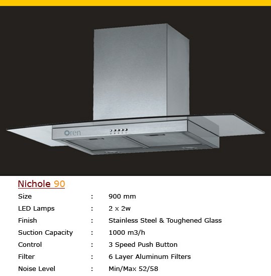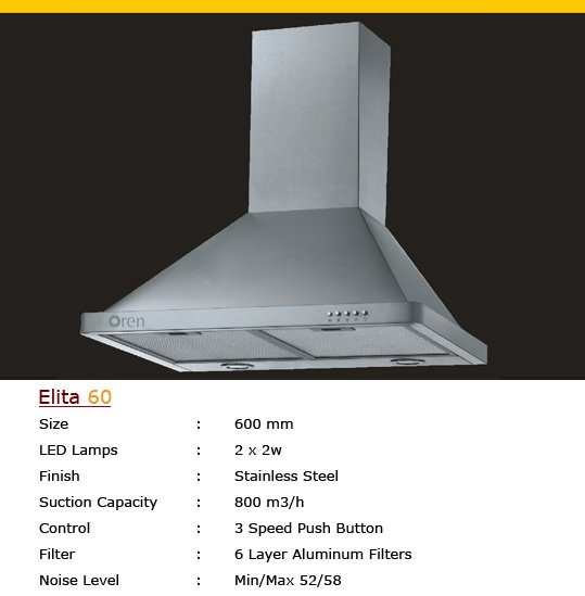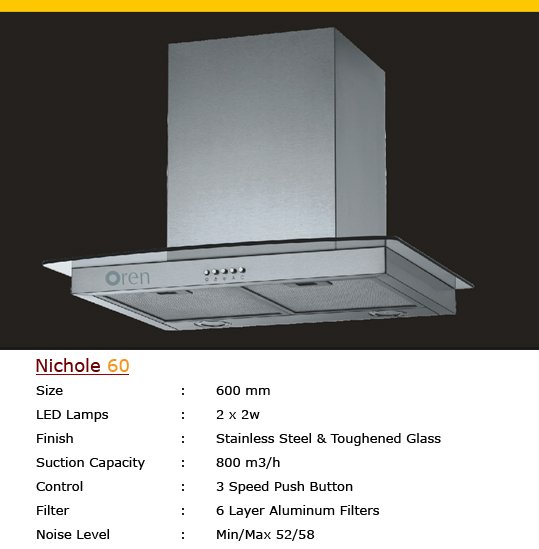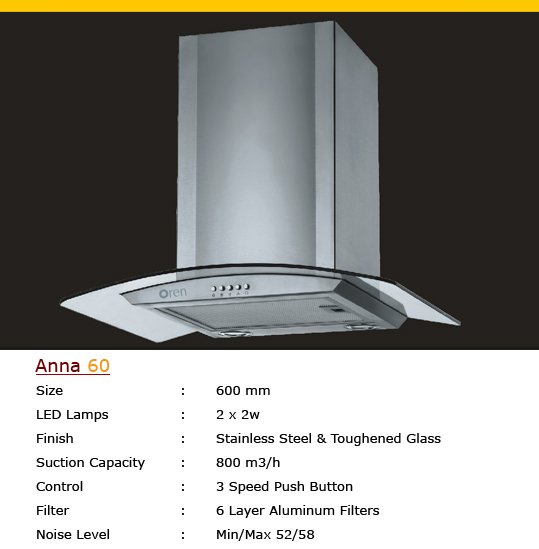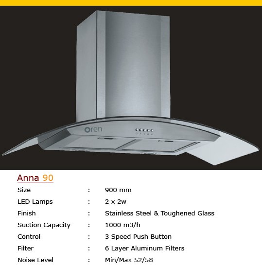 Oren Kitchen Appliances brings you new-age chimneys powered by such potent features as high air suction capacity and a 6-layer aluminium filter that suck smoke, steam and odour out of your kitchen, giving you air that's pure and fresh. Oren Kitchen Appliances are set to make your kitchen a better place to spend in.